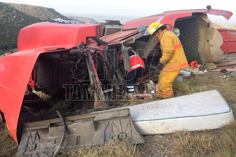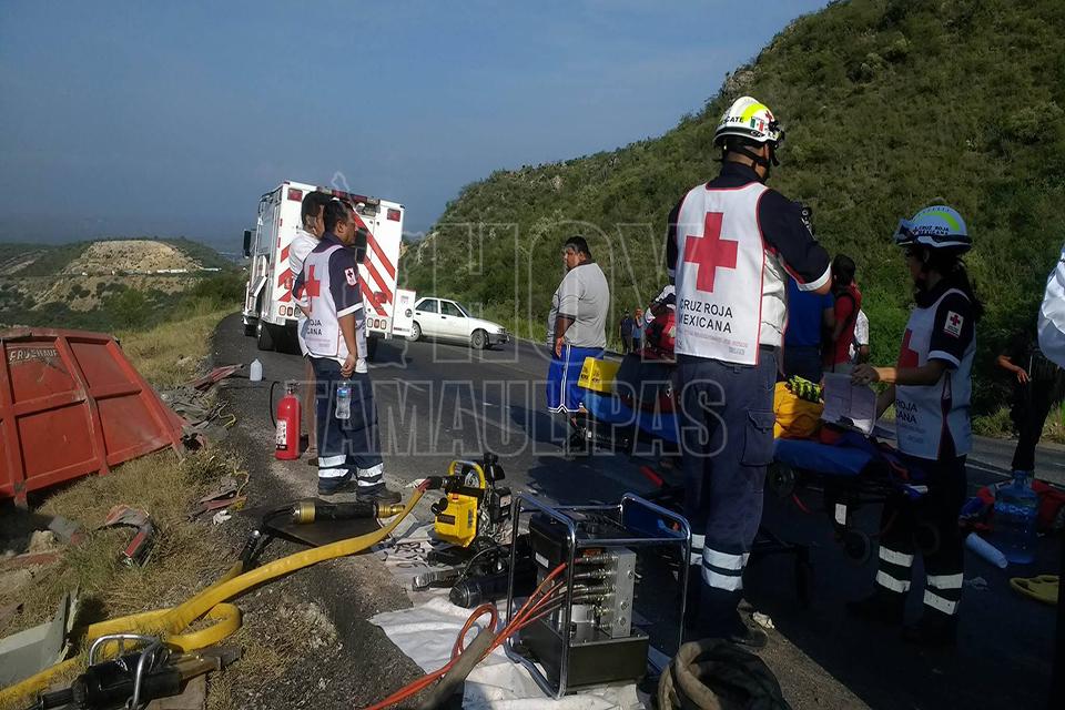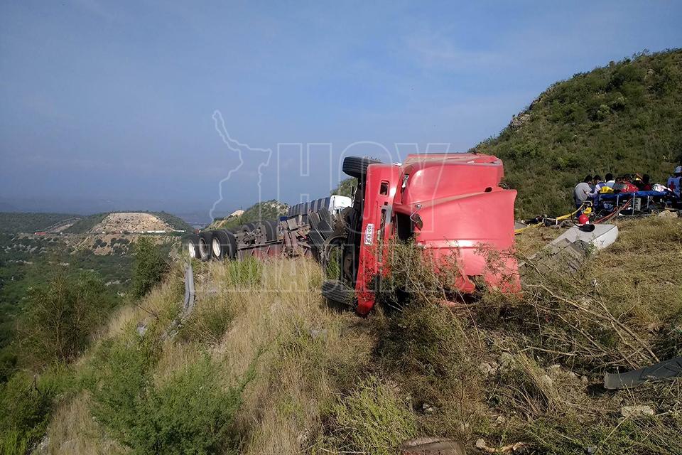 Choque entre autobús y tráiler en la carretera Rumbo Nuevo km 34, el autobús se fue al voladero en donde hay varias personas lesionadas, además de muertos.