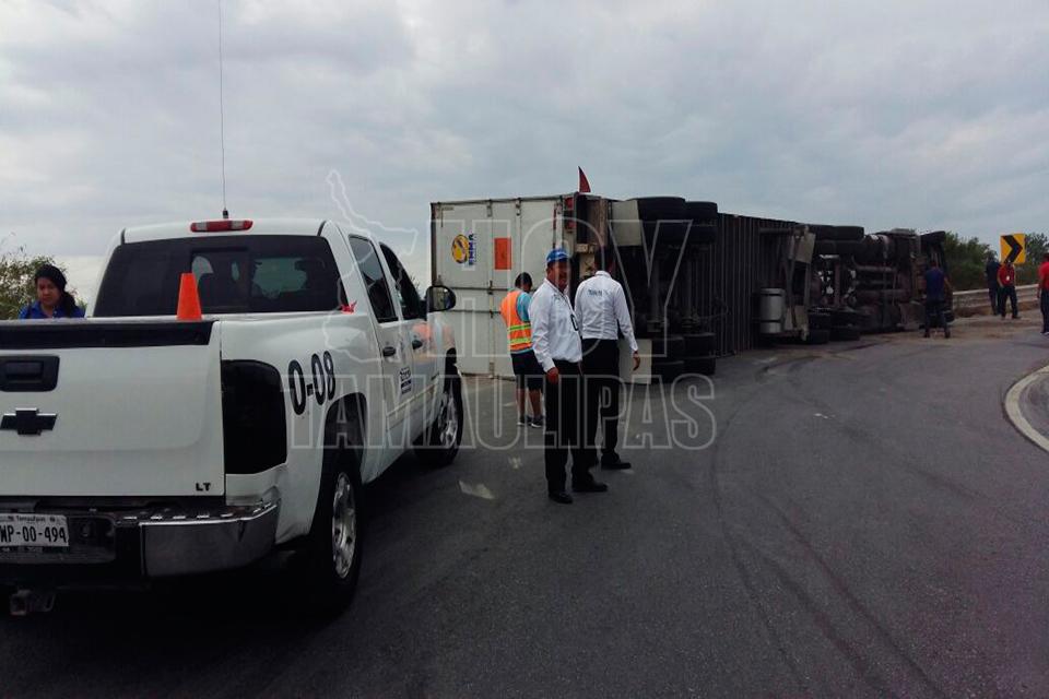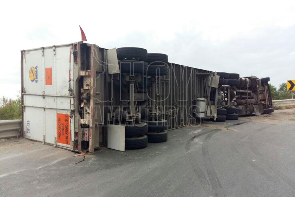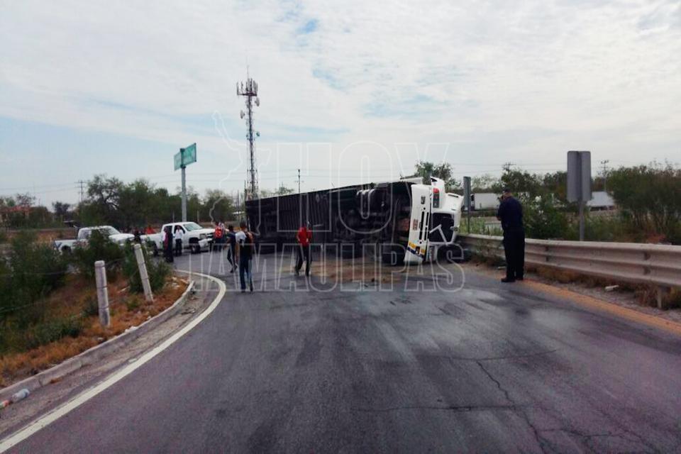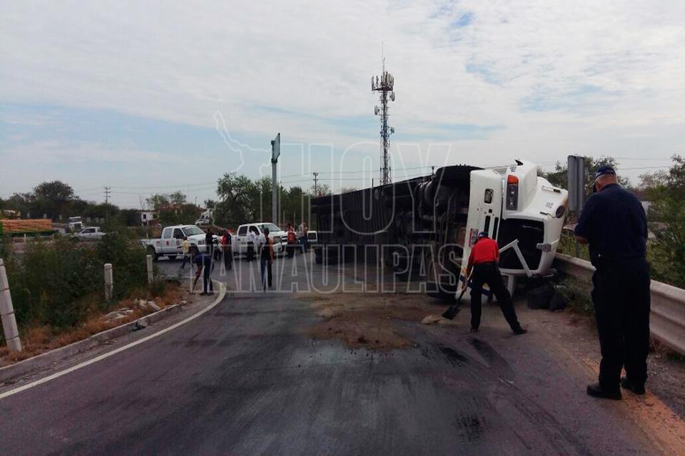 Un chófer que transportaba chile morrón se quedó dormido en el volante y perdió el control de su camión hasta terminar volcado
