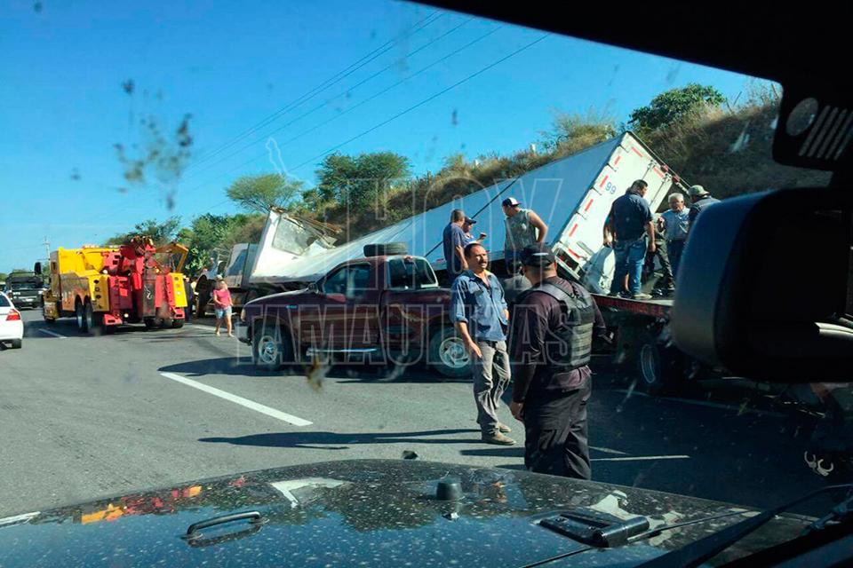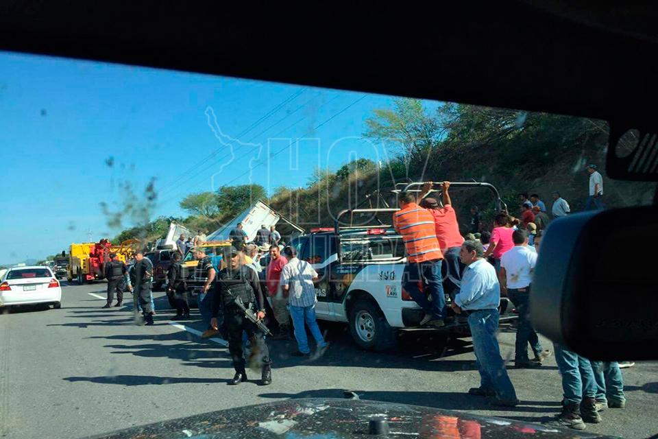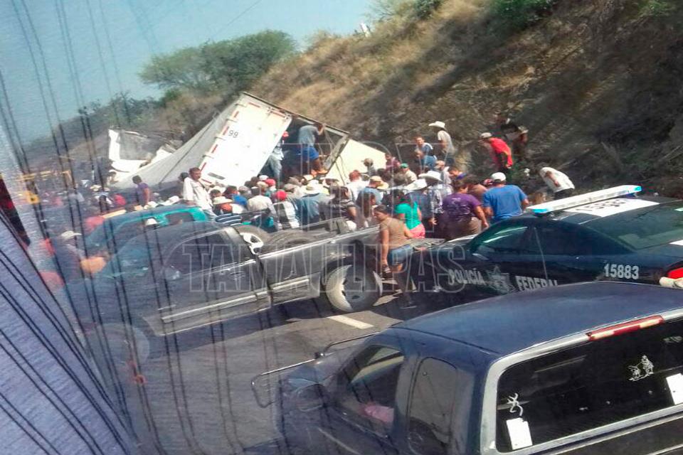 Un tráiler que transportaba carne se volcó residentes de la zona al ver que el tráiler contenía carne abrieron las puertas y se empezaron a llevar la mercancía.