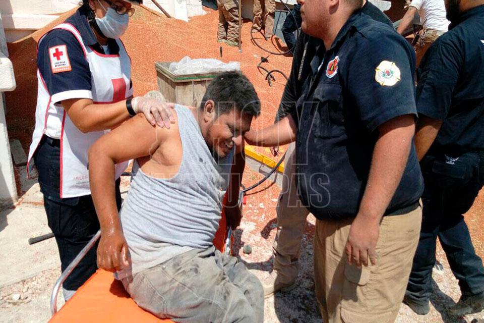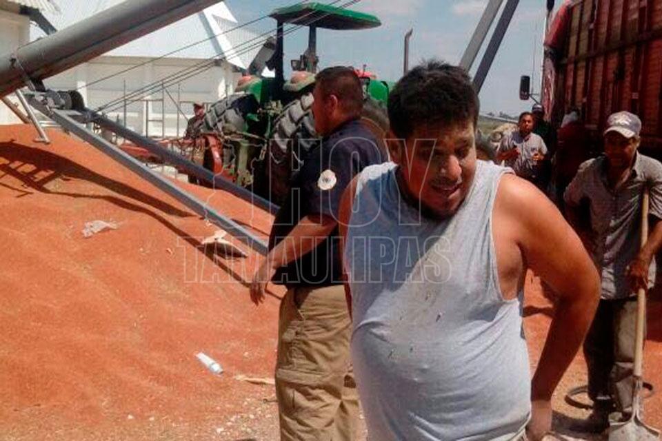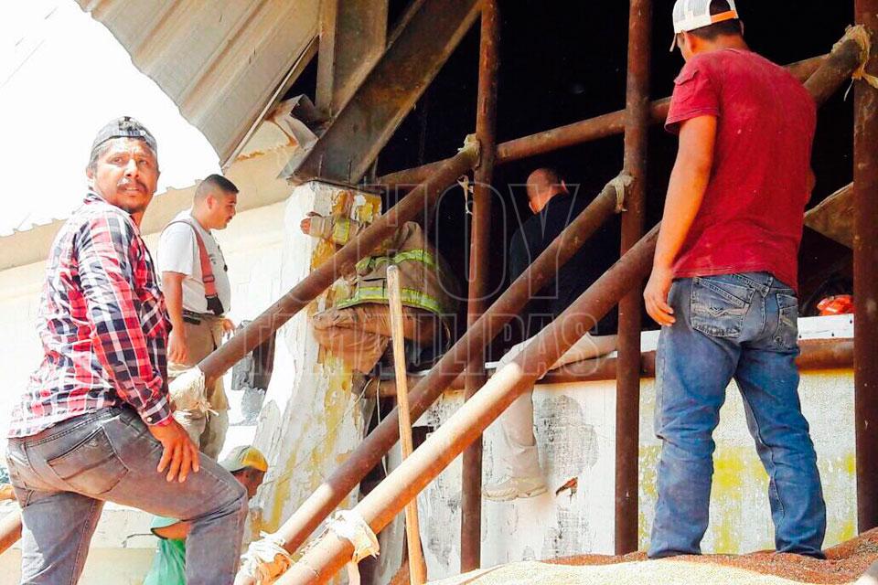 Un hombre estuvo a punto de morir al quedar atrapado por más de 40 minutos entre una montaña de sorgo en una bodega, de donde fue rescatado por elementos de Protección Civil y Bomberos de Matamoros