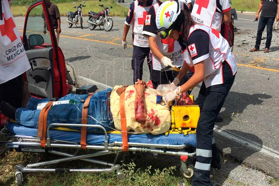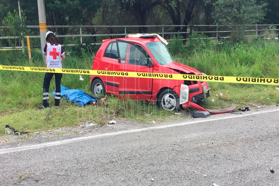 Paramédicos de la Cruz Roja se dieron a la tarea de sacar del vehículo compacto en color rojo al conductor, quien quedó prensado, para enseguida trasladarlo a un Hospital, mientras el cuerpo de la mujer quedó tendido sobre el piso, a un lado del vehículo.