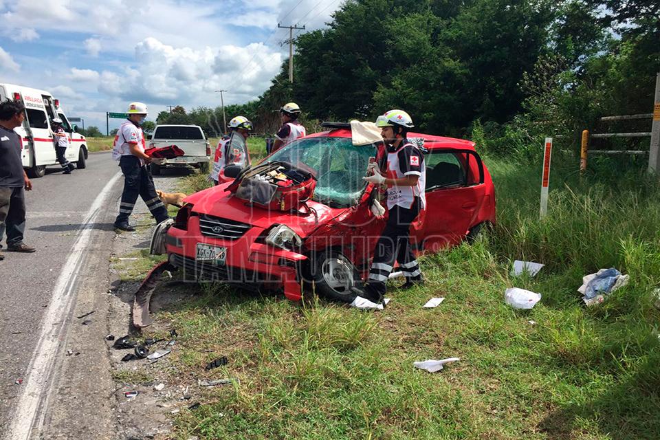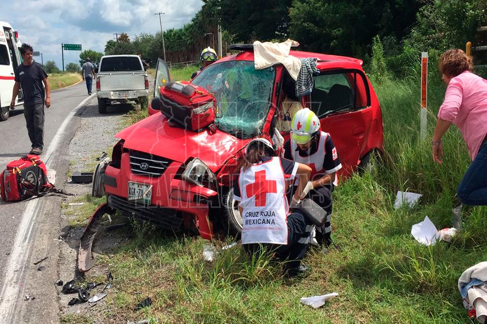 Una mujer perdió la vida y un hombre quedó prensado al registrarse un encontronazo entre el conductor de un automóvil compacto y una camioneta en el entronque de la carretera al Mante.