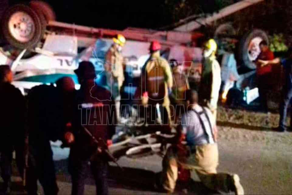 Seis personas muertas y al menos 40 más lesionadas, fue el saldo de la volcadura de un transporte de personal en la carretera Reynosa-Río Bravo