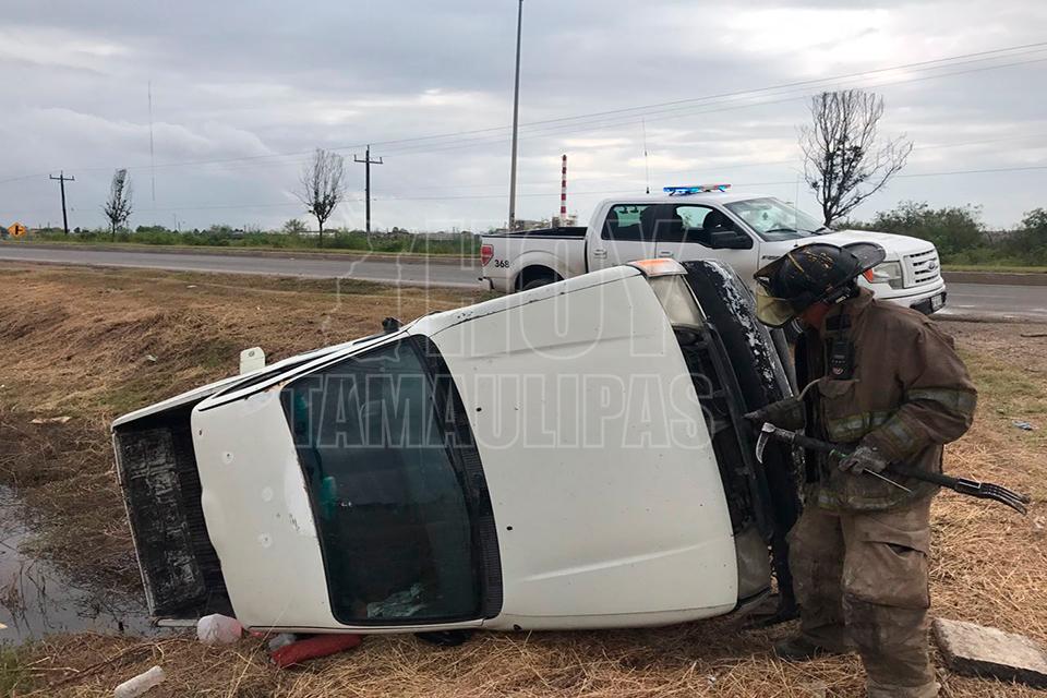Un choque con volcadura entre dos camionetas se registró hoy en la carretera Matamoros-Reynosa, dejando como saldo una persona lesionada