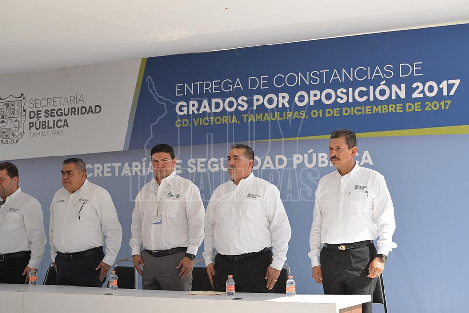 El Vicealmirante Luis Felipe López Castro, secretario de Seguridad Pública en Tamaulipas, hizo entrega de Constancias de Grados por Oposición 2017 en el Complejo