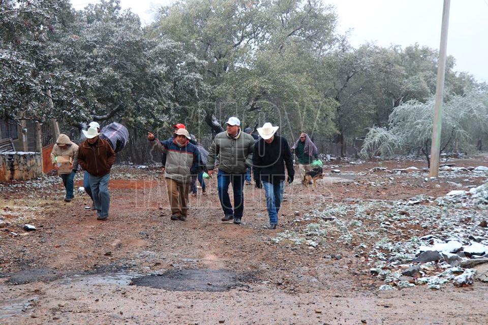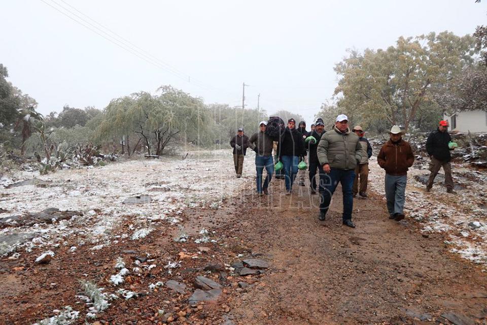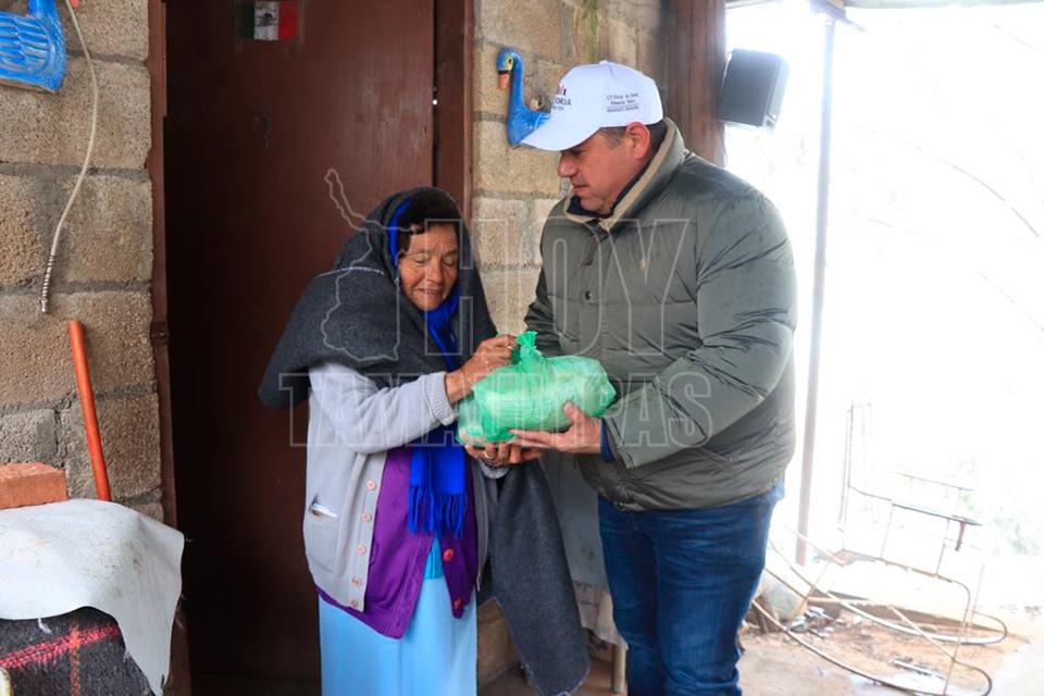 El alcalde Oscar Almaraz Smer entregó apoyos a las familias de las zonas que registraron la temperatura más baja en el municipio de Ciudad Victoria, como el Ejido Altas Cumbres, donde se registró la caída de nieve