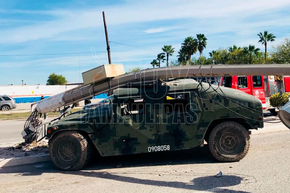 Al menos dos elementos de le Secretaría de la Defensa Nacional (Sedena) resultaron lesionados, luego de que la unidad militarizada en la que viajaba chocó contra un poste de concreto