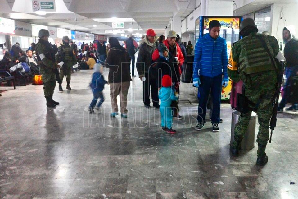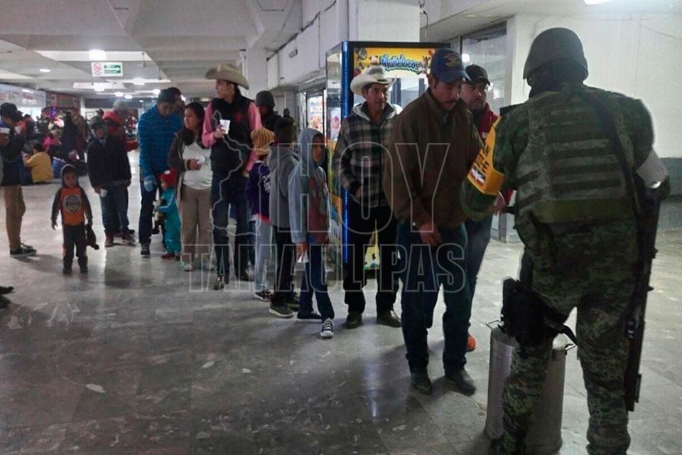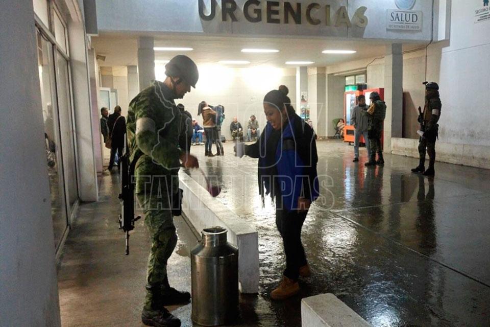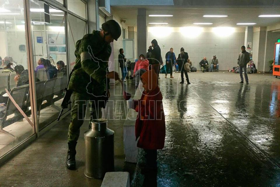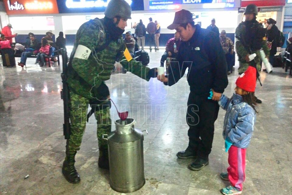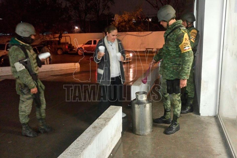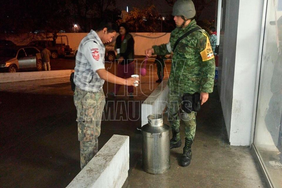 Elementos del Ejército Mexicano realizan labor social entre la ciudadanía que tiene familiares internados en hospitales de Reynosa, llevándoles bebidas calientes