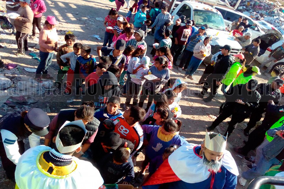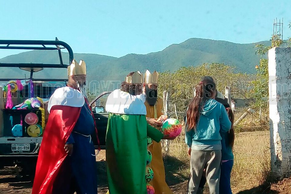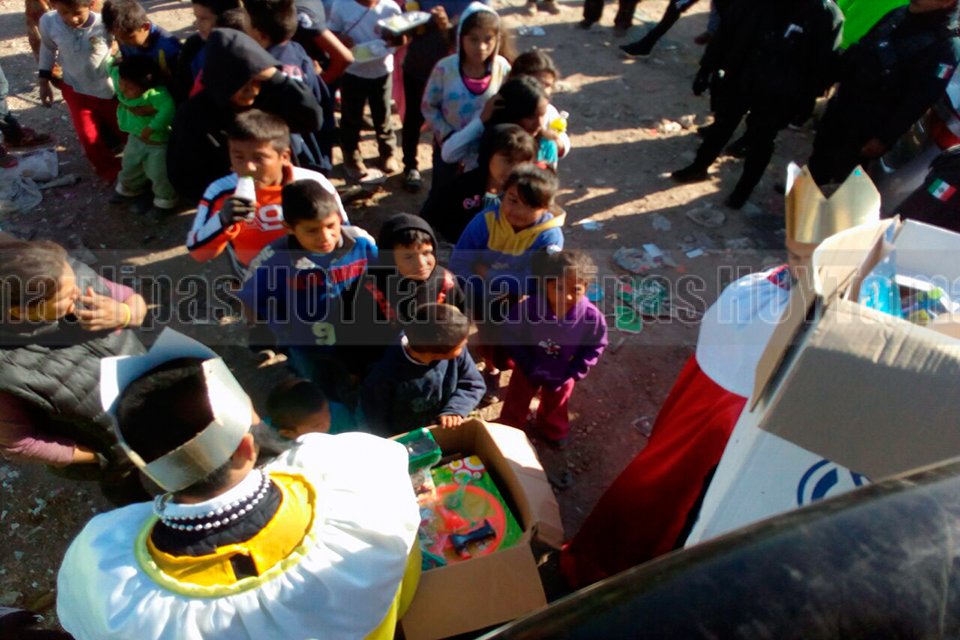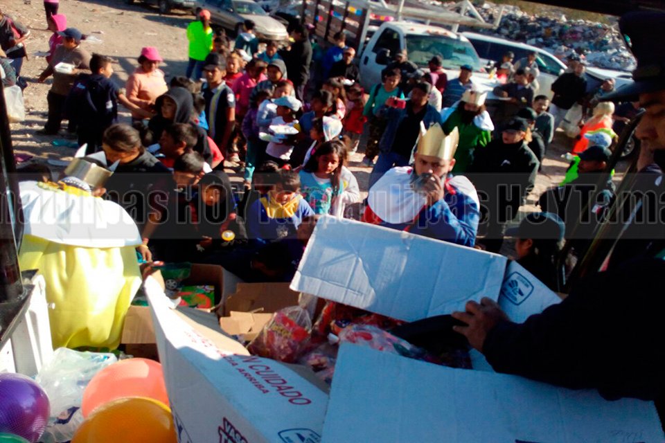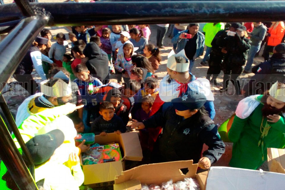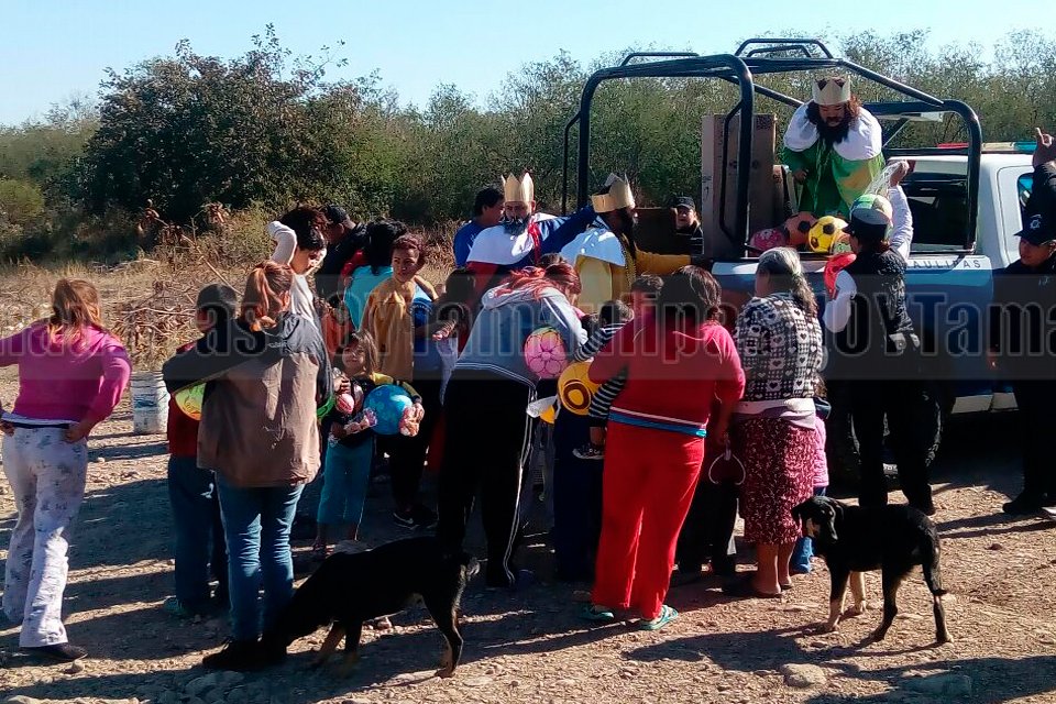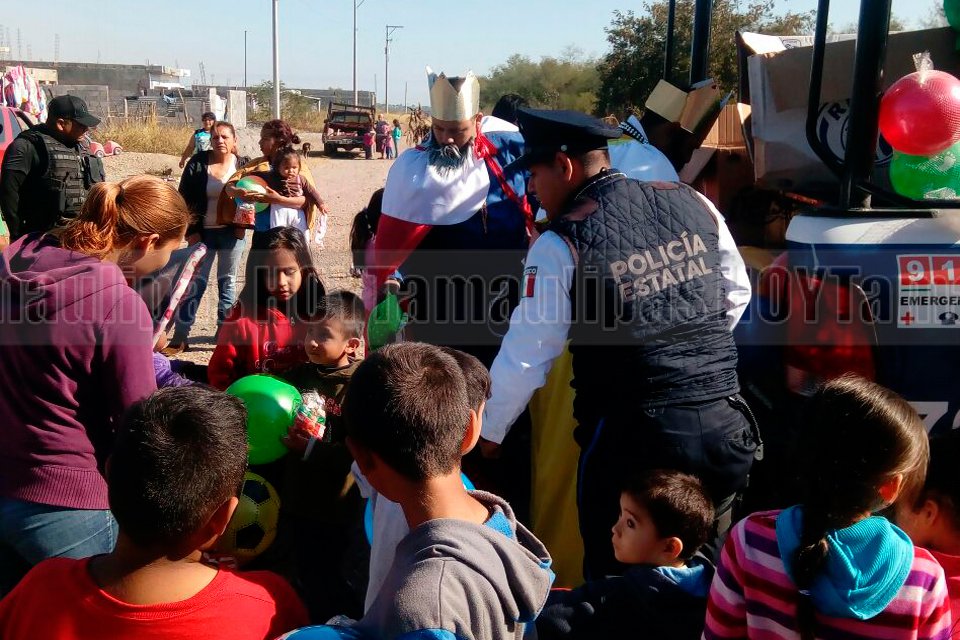 Con vestimenta de los tres Reyes Magos, elementos de Proximidad coordinación, regalaron dulces y juguetes a niños en diferentes lugares de Ciudad Victoria