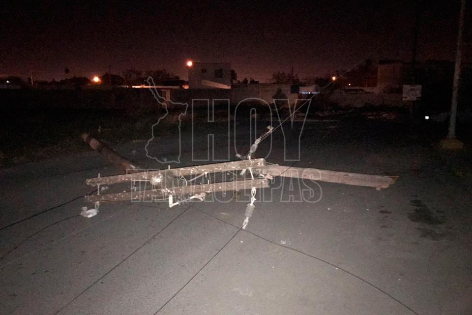 Por ejemplo en la colonia Las Brisas dos postes de la Comisión Federal de Electricidad que tenía un transformador cayeron. Uno de ellos golpeó un vehículo en circulación, y otro auto también resultó dañado