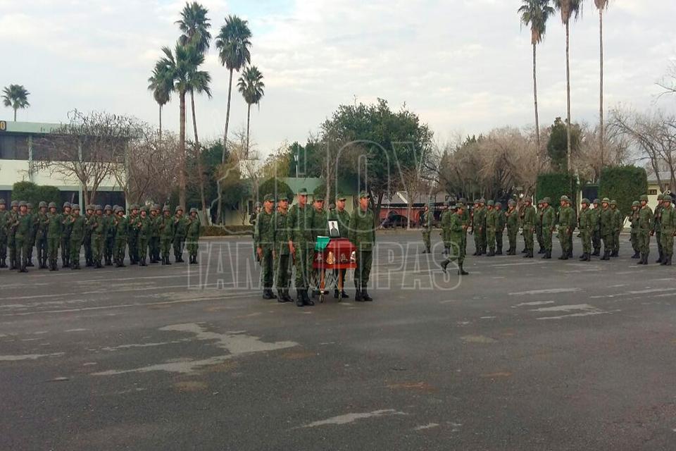 Las cornetas entonaron la marcha de la dragona y posteriormente el cortejo fúnebre partió de la explanada de la Octava Zona Militar reynosense.