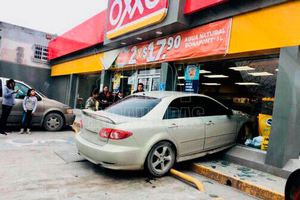 Una pareja se metió con todo y el vehículo en el que viajaba a una tienda de conveniencia en Matamoros, causando daños valorados en más de nueve mil pesos
