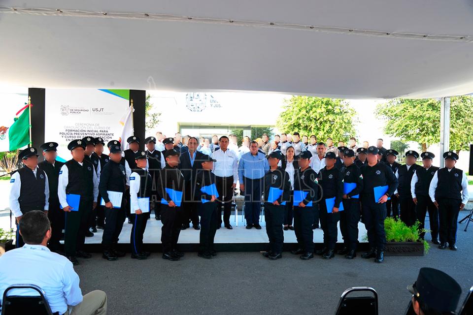 Un total de 124 policías estatales se integrarán a las labores de seguridad y protección ciudadana en los 43 municipios de Tamaulipas, al haber terminado el curso de formación inicial para Policía Preventivo y el de Especialización de Policía de Reacción.