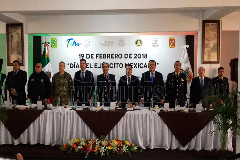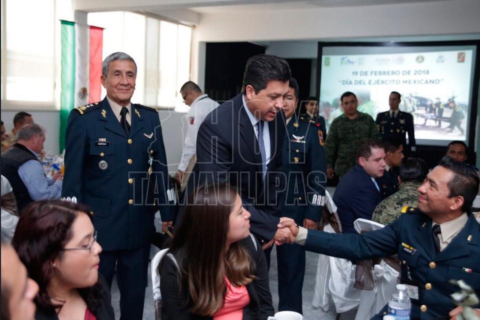 El gobernador de Tamaulipas Francisco García Cabeza de Vaca, estuvo presente en la celebración del Día del Ejército Mexicano en Reynosa, en evento encabezado por el comandante de la octava zona militar General Brigadier Diplomado del Estado Mayor Adelfo Castillo López.