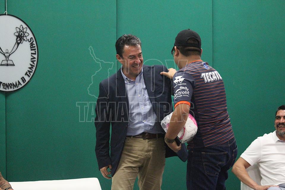 La comunidad de la Universidad Autónoma de Tamaulipas (UAT) interactuó este día con jugadores, cuerpo técnico y directivo del Equipo de Fútbol Correcaminos con el propósito de escuchar las ideas e inquietudes de los universitarios.