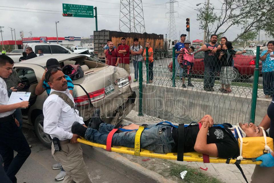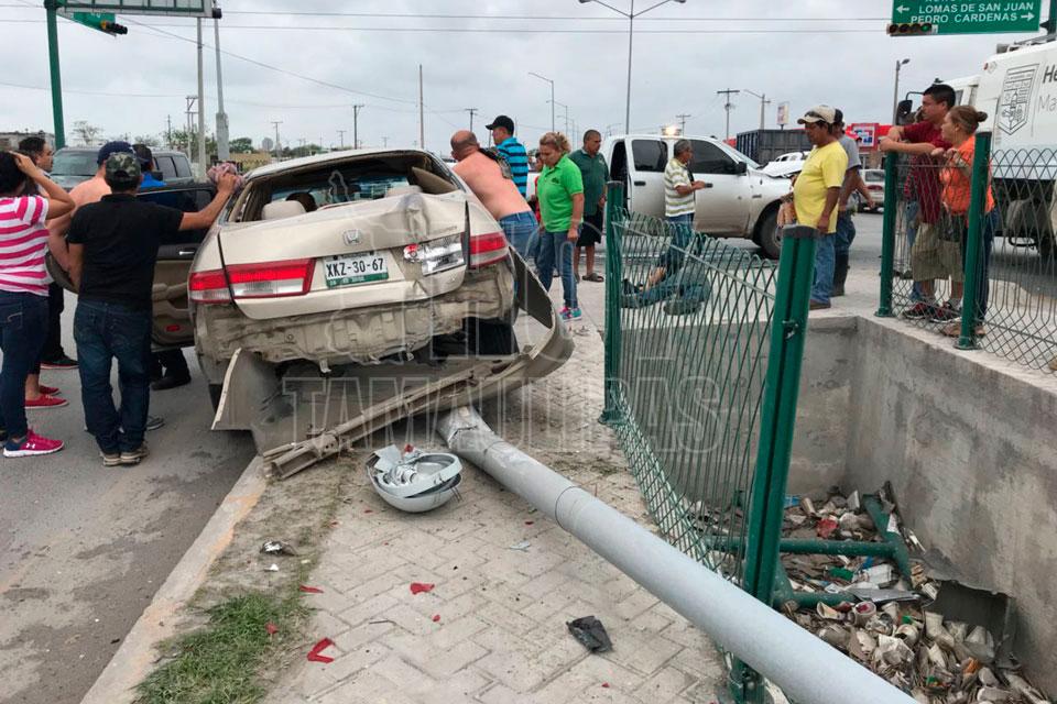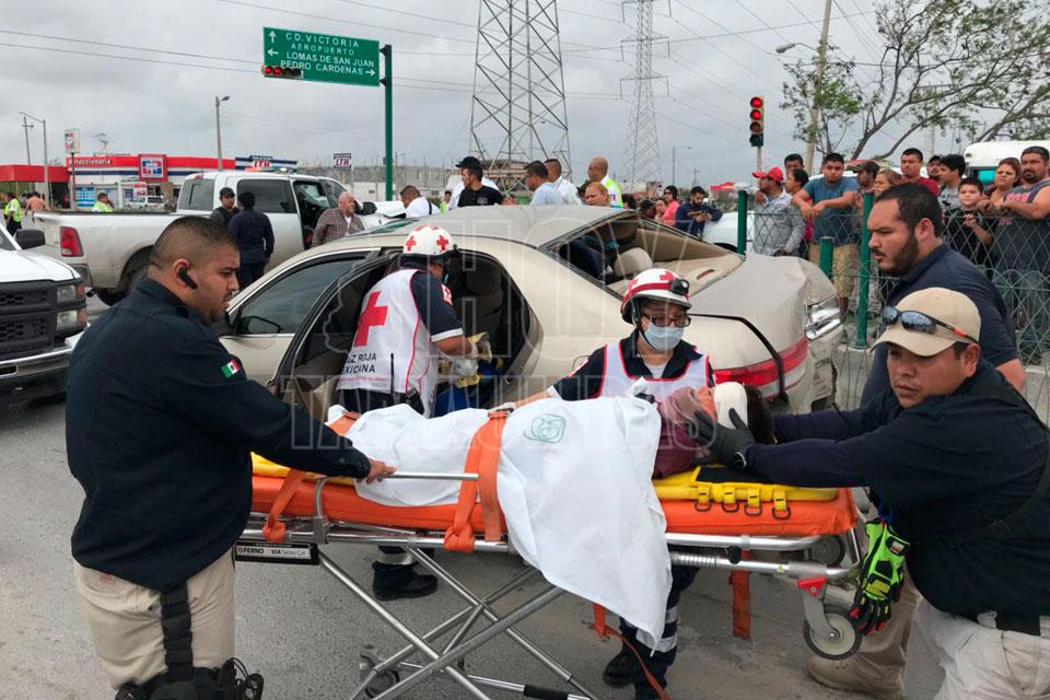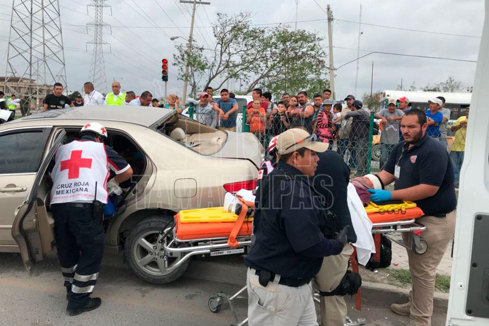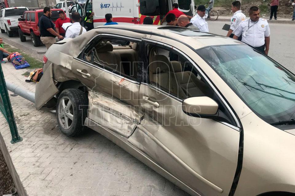 Un total de ocho lesionados, entre ellos cuatro menores de edad, y daños materiales de consideración, fue el saldo de un choque registrado en Matamoros entre una unidad de la Policía Investigadora y un auto