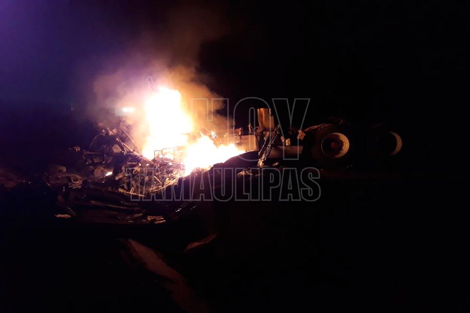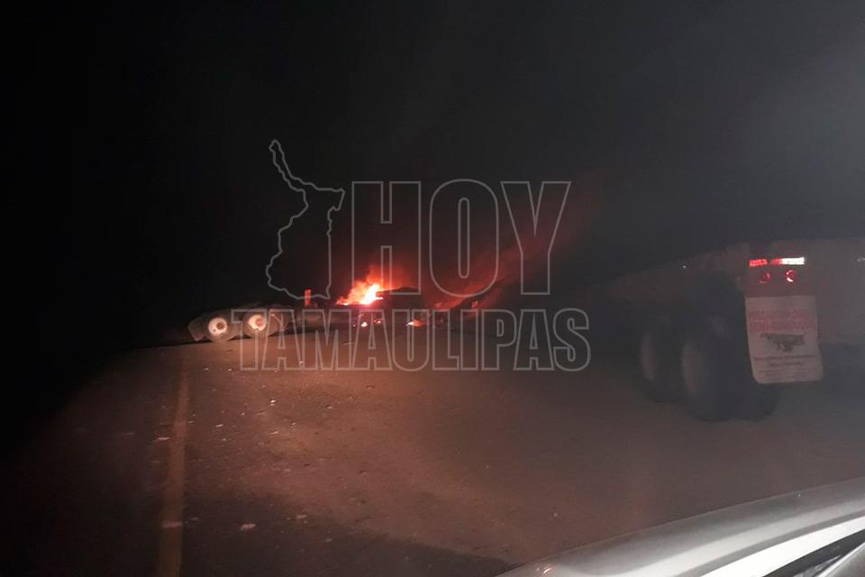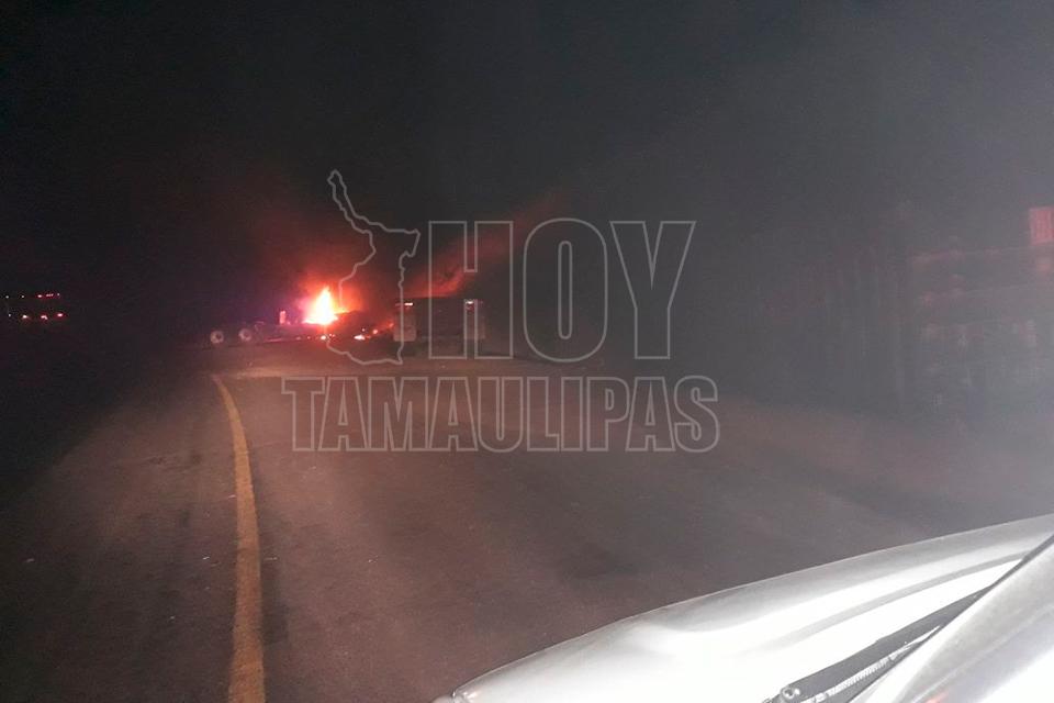 Un trailero resultó herido y la vialidad cerrada en un carril cuando al conducir a exceso de velocidad el segundo remolque se desprendió y posteriormente se impactó contra un talud y enseguida se incendiara la pesada unidad en la carretera Jaumave-Victoria, a la altura de retén militar en el Ejido San Antonio.