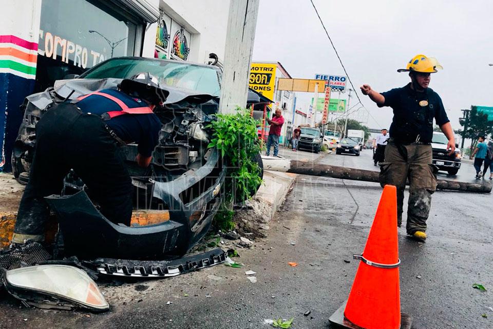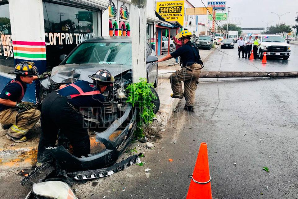 El exceso de velocidad, aunado del pavimento mojado, fueron las causas de un fuerte choque que se registró en Matamoros y que dejó como saldo una persona lesionada y daños materiales