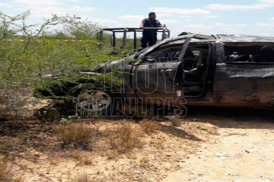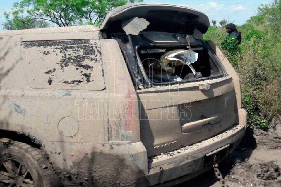 Una camioneta, cuyos hombres armados abrieron fuego a un convoy de oficiales, quedó entre el lodo y los matorrales.