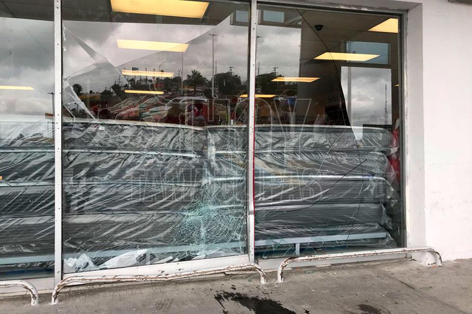 Daños valorados en más de 50 mil pesos ocasionó una persona de la tercera edad al impactar su camioneta contra los ventanales de un centro comercial en Matamoros, luego de que presuntamente se quedó sin frenos.