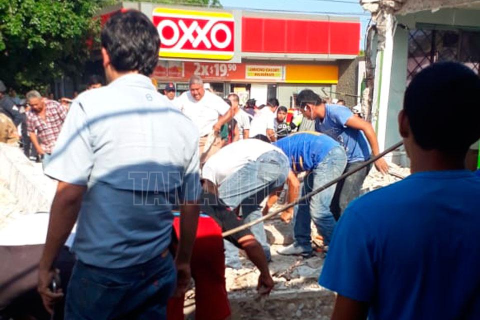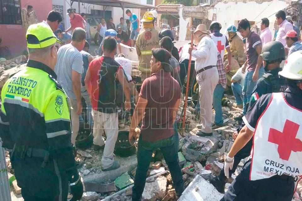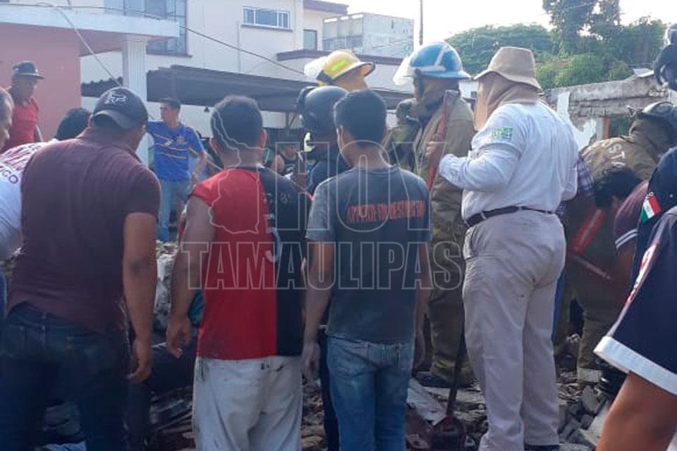 Al menos tres personas quedaron atrapadas dentro de una casa al derrumbarse la loza, por lo que cuerpos de emergencias de Tampico trabajan para rescatarlos, pues aparentemente se encuentran con vida