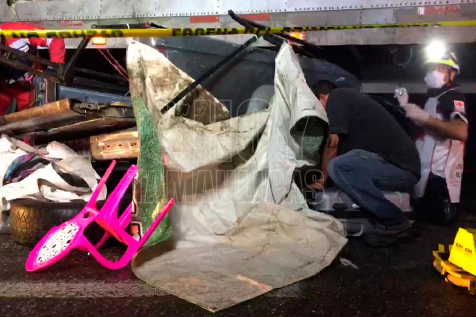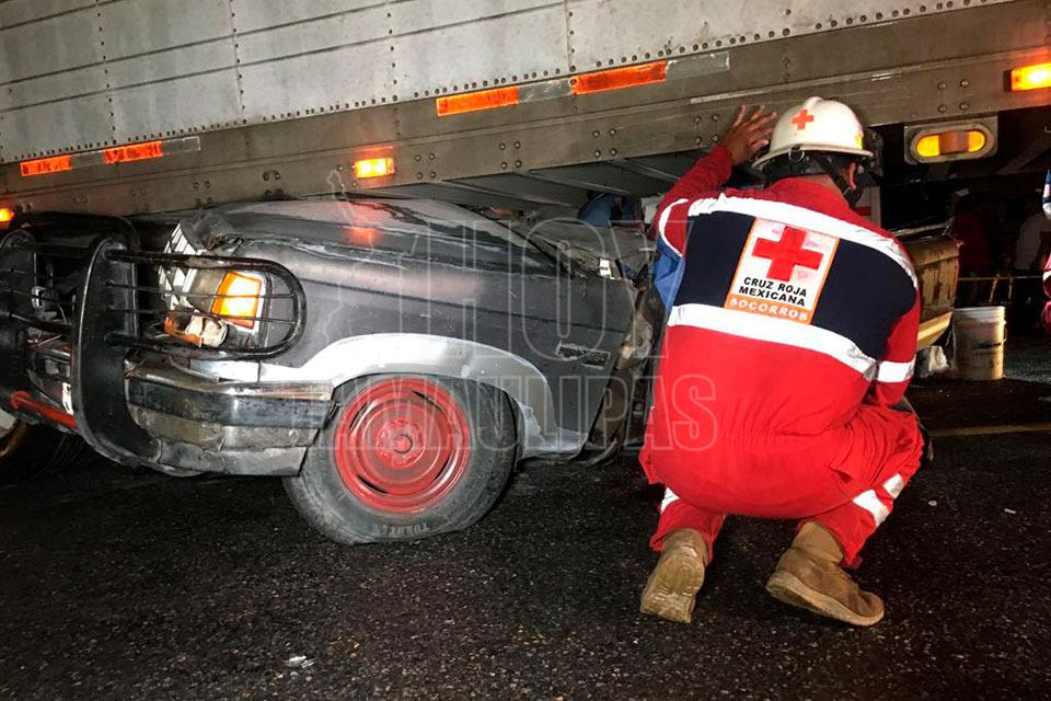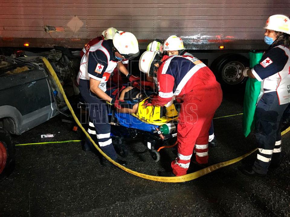 Los paramédicos lograron extraer a dos personas y llevarlos a un centro médico, según los reportes preliminares, el conductor de la pesada unidad, había intentado subir a la cinta asfáltica y en el intento provocó el accidente