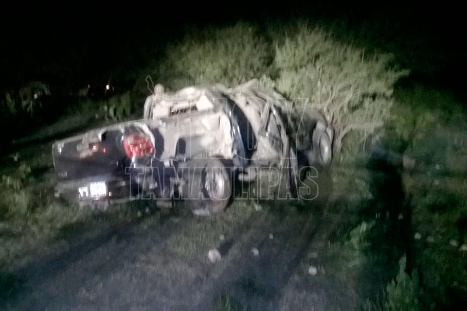 Dos hombres murieron y dos más resultaron gravemente lesionados al volcar la camioneta en la que se desplazaban, sobre la carretera Tula-Victoria, en el kilómetro 30 de la carretera interestatal 79 Pamillas-Miquihuana