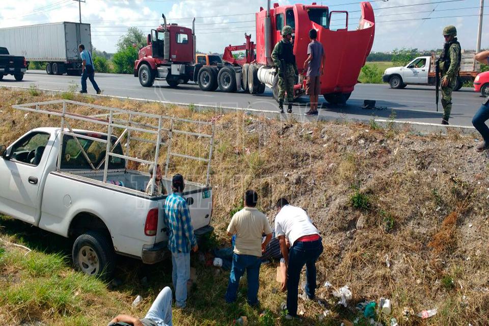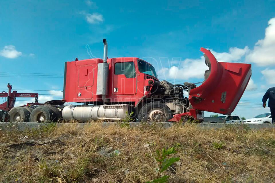 El conductor de un tractocamión invadió carril y como consecuencia impactó a la camioneta Ford, donde viajaban las cuatro personas heridas al salir disparadas de la misma