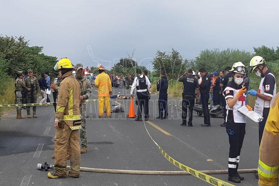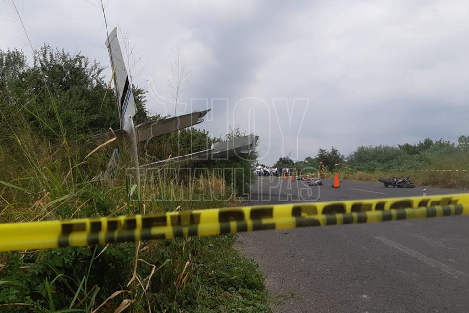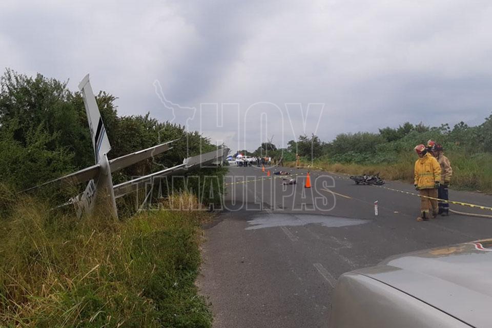 Dos jóvenes que viajaban en una motocicleta murieron de manera instantánea, al ser golpeados por una avioneta tipo Cessna que cayó en el Bulevar de los Ríos, a la salida del Ejido Lomas del Real de Altamira