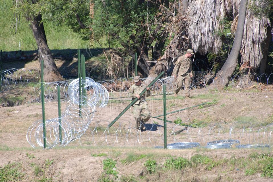 El Ejército de los Estados Unidos llegó a la frontera de Laredo, Texas con Nuevo Laredo para colocar alambres de púas, como petición de Aduanas y Protección Fronteriza