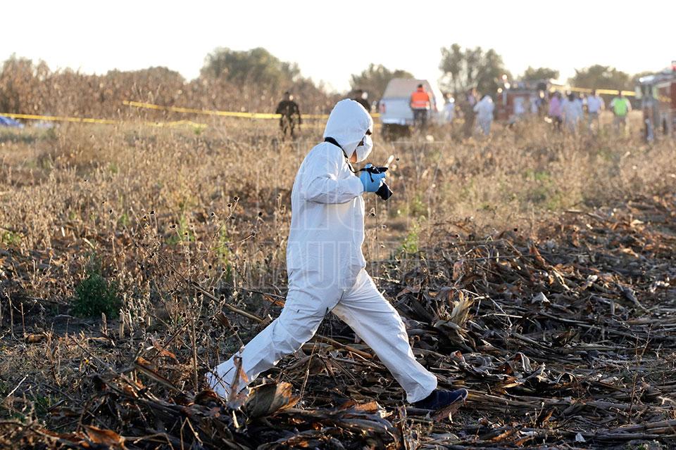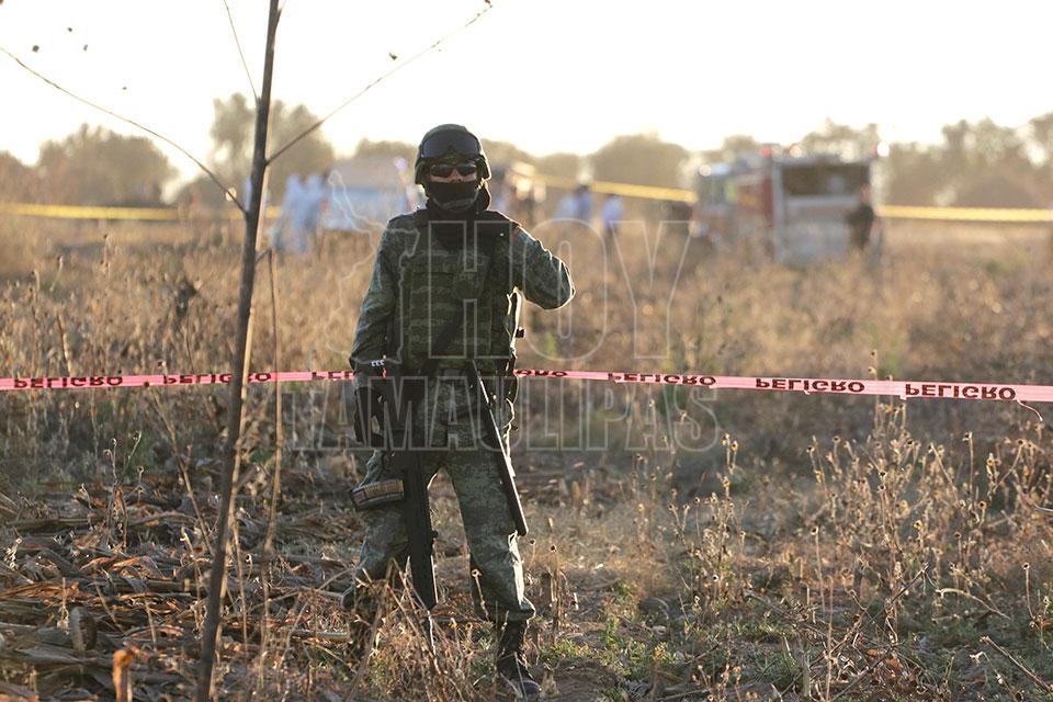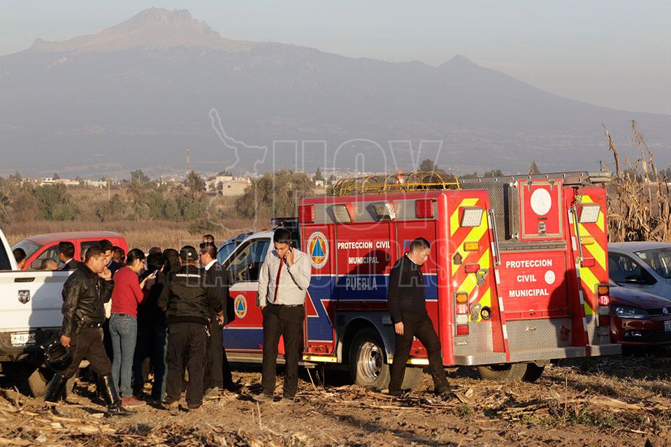 Elementos de corporaciones de los tres órdenes de gobierno cercan el área donde se impactó el aeronave donde viajaba la gobernadora Martha Erika Alonso Hidalgo. Al sitio arribaron elementos de la Procuraduría General de la República, además de personal de Protección Civil estatal
