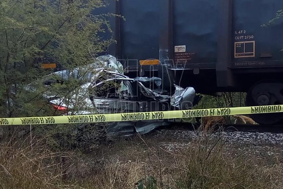 Dos mujeres que conducían un vehículo Honda murieron de manera instantánea al tratar de ganarle el paso al tren en el kilómetro 49 de la carretera Victoria-Monterrey