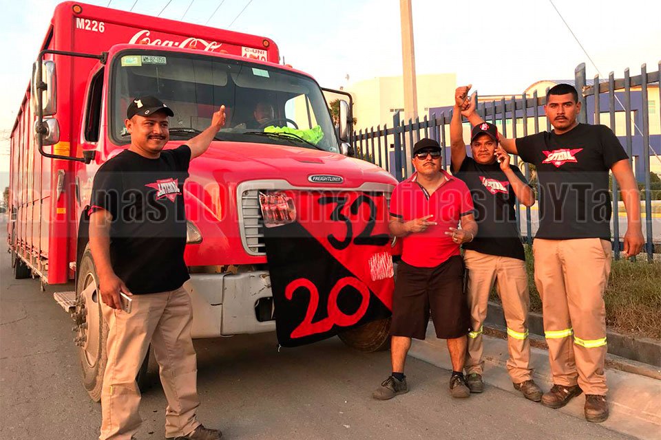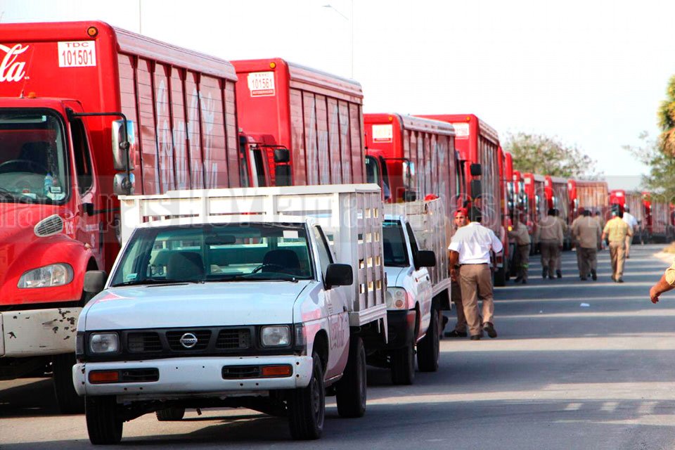 Unidades de reparto de la empresa Arca Continental Coca-Cola Matamoros fueron traslada a la ciudad de Reynosa y otras fueron retenidas en la carretera que comunica con esa ciudad fronteriza, por los trabajadores de dicha empresa