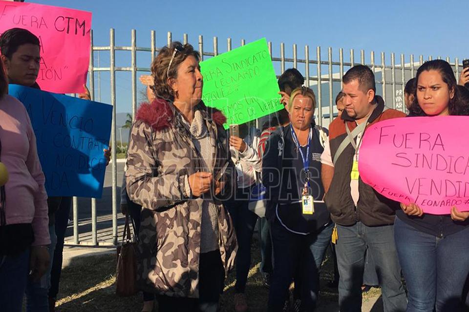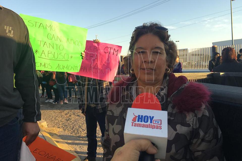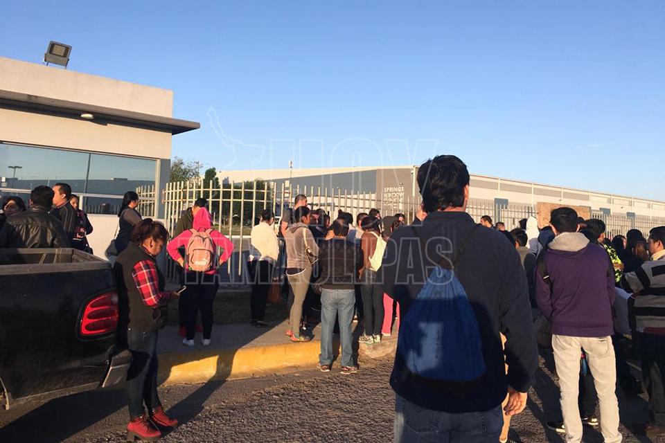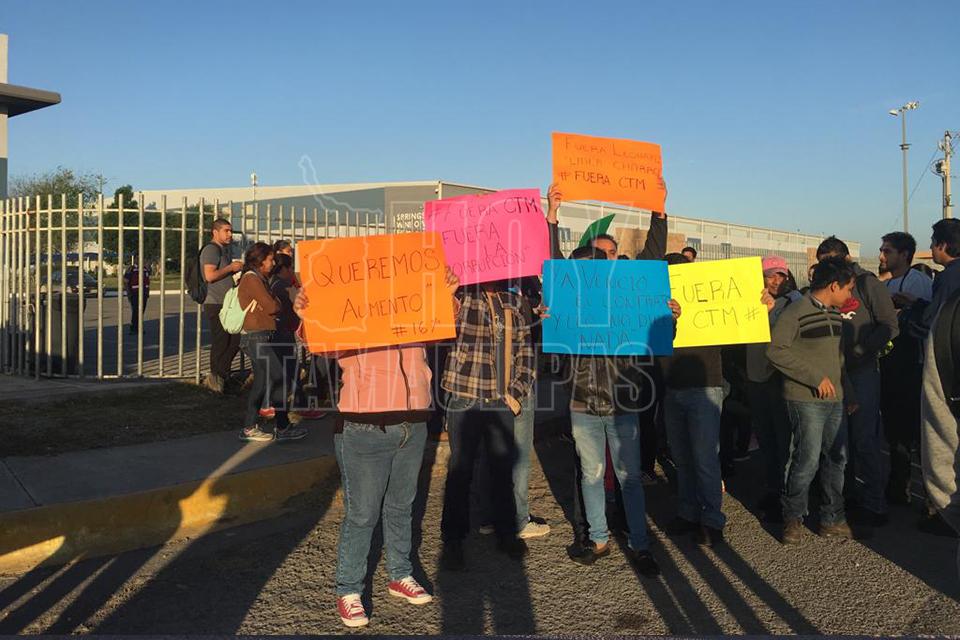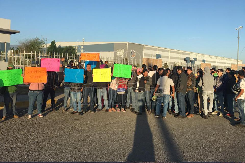 Obreros de la maquiladora Spring Window Fashion se manifestaron afuera de las instalaciones de la empresa para exigir el cambio de dirigente en el Sindicato, ya que aseguran el actual líder no trabaja en beneficio de ellos