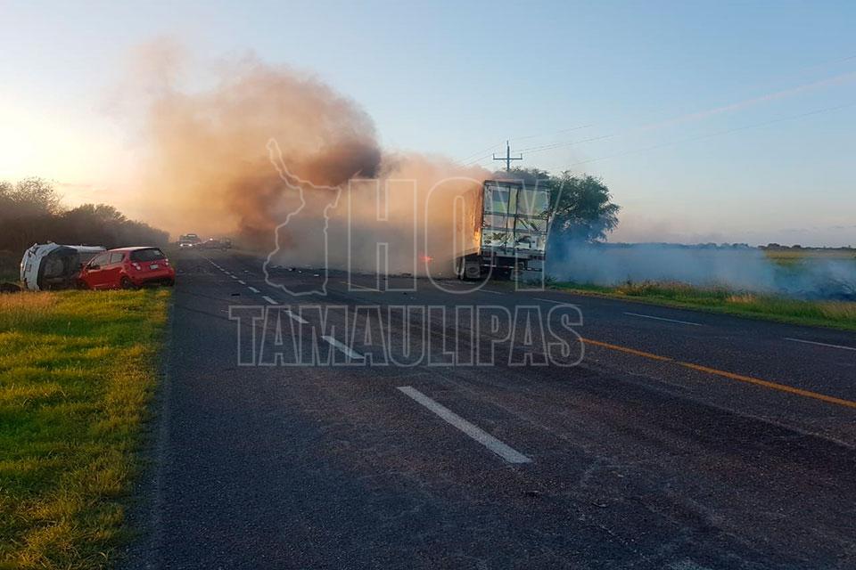 Una persona muerta y una más lesionada, fue el saldo de un choque múltiple entre dos vehículos y un tracto camión, registrado esta tarde en el kilómetro 10 de la carretera Reynosa- San Fernando en el tramo carretero Urracas-Reynosa