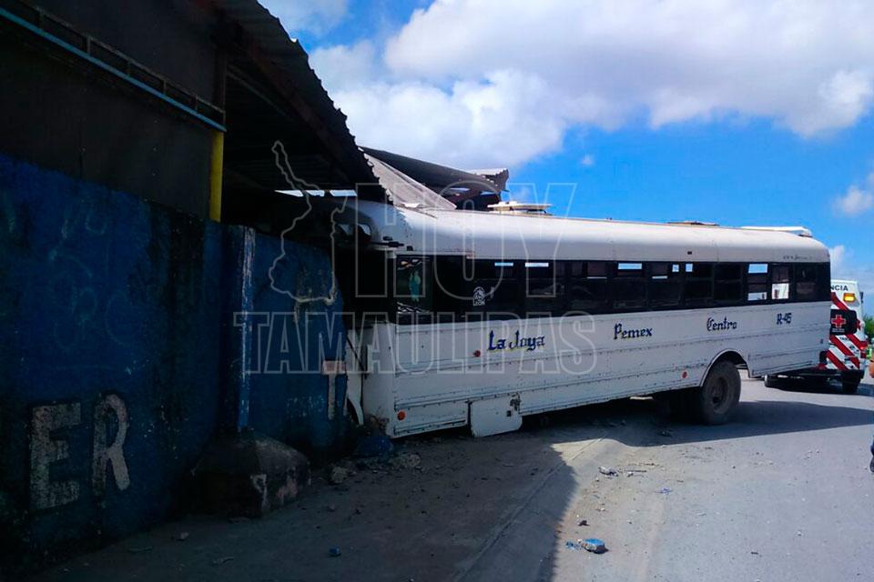 Reynosa, Tamaulipas.- Un conductor que invadió el carril de un chofer del transporte público en Reynosa, ocasionó que el microbús que este manejaba se impactara contra la barda de un taller mecánico.