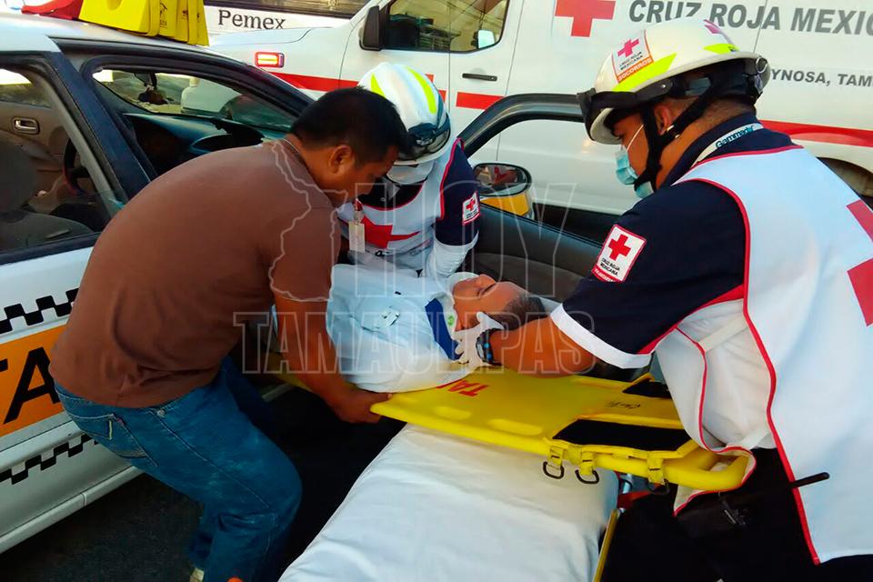 Reynosa, Tamaulipas.- Un taxista quedó lesionado luego de que la unidad en la que viajaba fue impactada por el conductor de un microbús, después de que el ruletero se salió de su carril.