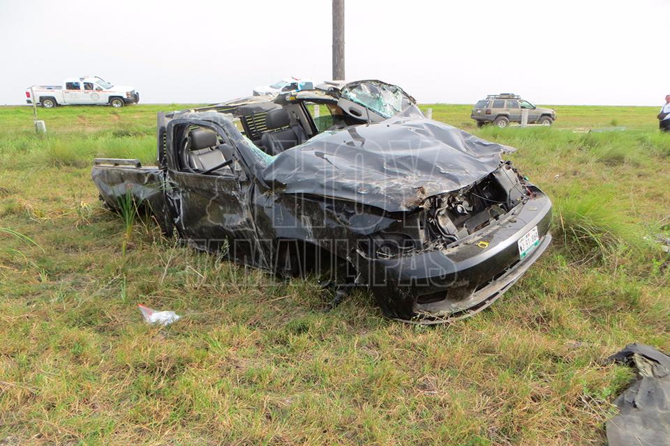 Matamoros, Tamaulipas.- Una mortal volcadura se registró en la carretera a la Playa Costa Azul en Matamoros, donde una mujer pereció luego de que la unidad donde viajaba “maromeo”, tras reventarse uno de los neumáticos.
