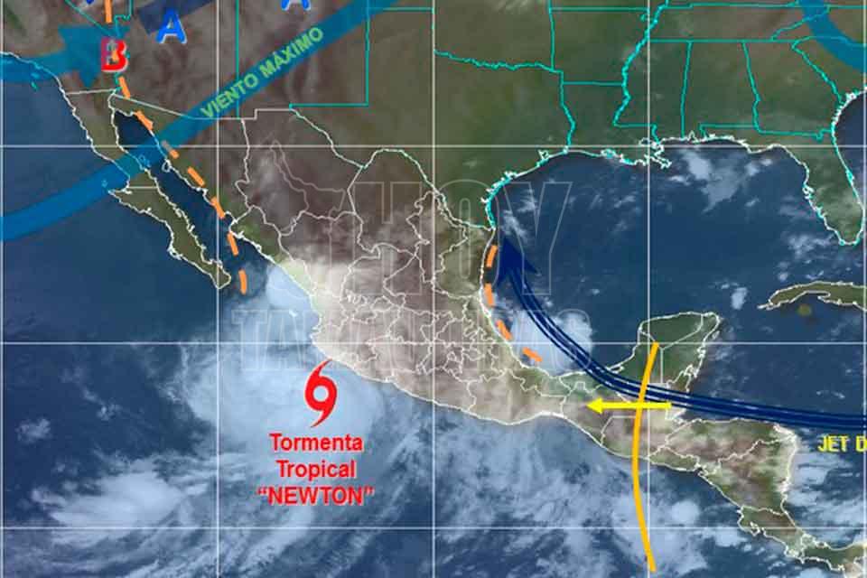 De acuerdo con el Servicio Meteorológico Nacional (SMN), Newton lleva vientos sostenidos de 65 kilómetros por hora y rachas de hasta 85 kilómetros y se ubica a 790 kilómetros de Cabo San Lucas.