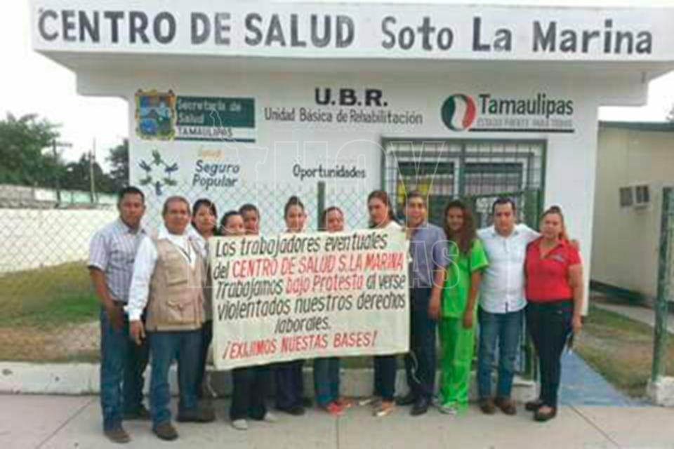 En el Centro de Salud de Soto La Marina trabajan 12 personas bajo el esquema eventuales desde administrativo, enfermería y vectores, donde algunos de ellos tienen poco más siete años trabajando sin ser tomados en cuenta al momento de darse las homologaciones laborales denunciaron.