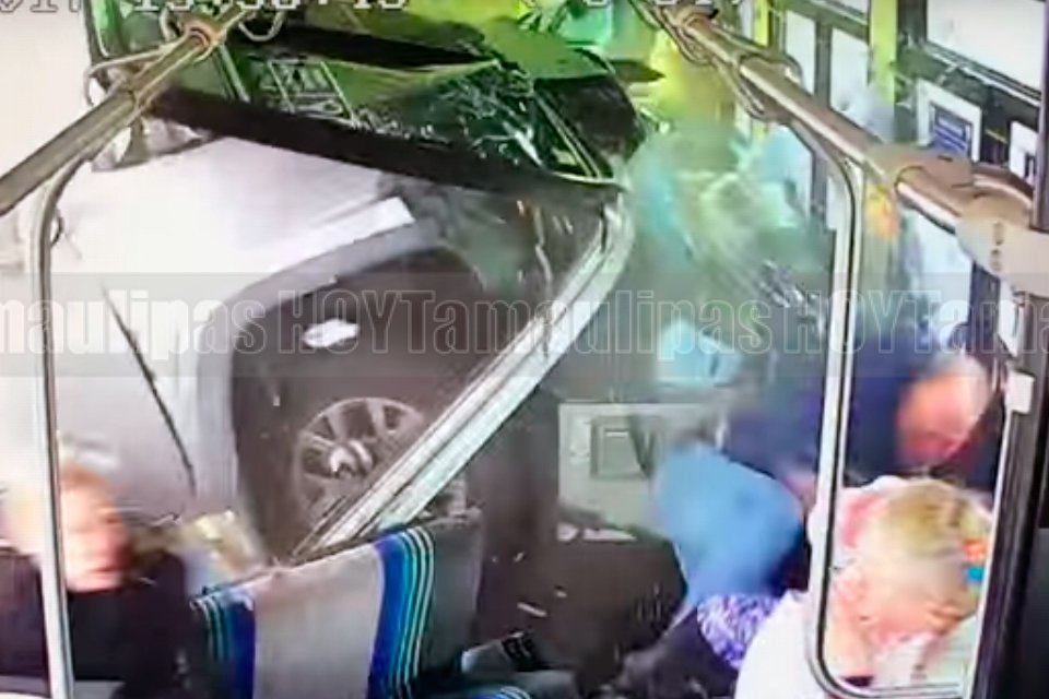 En el clip subido al canal syracuse.com se puede observar a los pasajeros al interior del autobús, cuando de repente la camioneta se impactó a gran velocidad contra la unidad de pasajeros, incluso se puede ver cuando un pasajero sale proyectado tras el impacto.