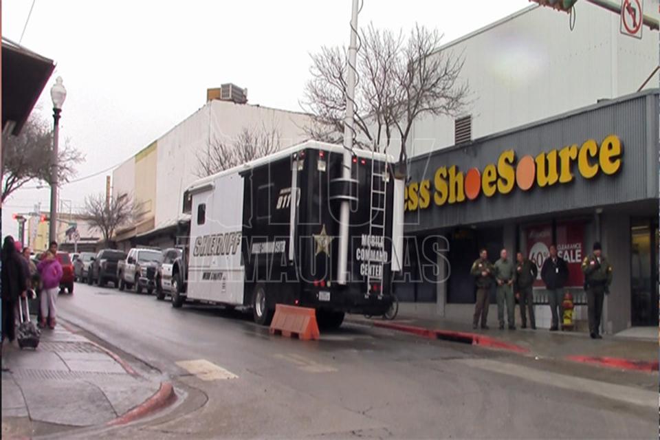 Alrededor de 200 agentes de Aduanas y Protección Fronteriza, Patrulla Fronteriza, Departamento de Policía de Laredo, Oficial del Sheriff del Condado de Webb, DEA, FBI, Swatt, entre otros, se apostaron en la primera cuadra de Laredo, para prevenir la presunta incursión violenta de los isleños.