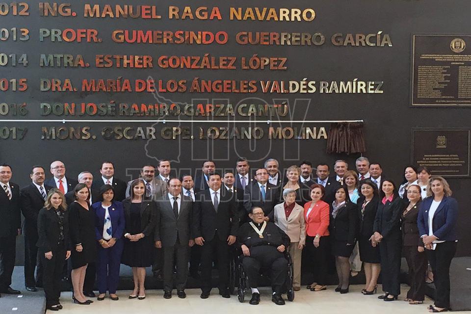 En sesión solemne de este miércoles, el Gobernador del Estado, entregó además un reconocimiento a Monseñor Lozano Molina, contando también con la presencia del Presidente del Supremo Tribunal de Justicia, Magistrado Horacio Ortíz Renán, posteriormente se develó el nombre del homenajeado, en letras doradas en el Muro de Honor del Poder Legislativo.