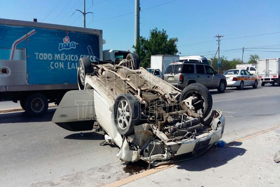 Reynosa, Tamaulipas.- El conductor de un automóvil se volcó cuando viajaba en aparente estado de ebriedad y conducía a exceso de velocidad resultando lesionado, por lo que fue trasladado a un Hospital para su atención médica.