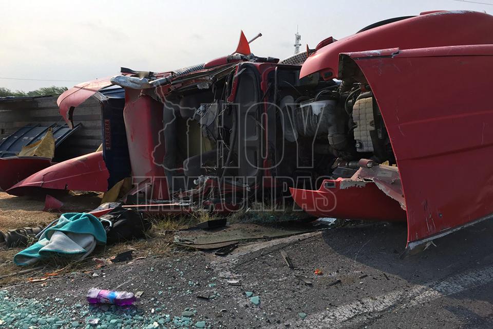 Tras la volcadura, el conductor resultó gravemente lesionado por lo que fue atendido y valorado en el lugar del accidente por paramédicos de la Cruz Roja, quienes decidieron trasladarlo a un Hospital de la capital tamaulipeca para su atención médica.
