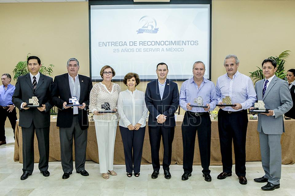 Los galardonados fueron los Agentes Aduanales, Javier Alegre Rabiela, José Martin Domínguez Muro, Julio Cesar Flores Salcedo, Patricia López Jiménez, Mario Palos Garza y Jorge Treviño Salinas, todos ellos con 25 años de servicio en el gremio aduanal.