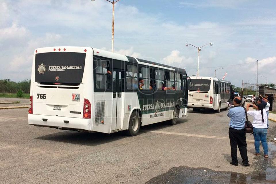 Ciudad Victoria, Tamaulipas.- Dos autobuses y varias camionetas de la Secretaría de Seguridad Pública del Estado, salieron esta mañana del Centro de Ejecución de Sanciones (Cedes) en Ciudad Victoria con destino a Altamira, para presuntamente traer custodios de aquel Penal.