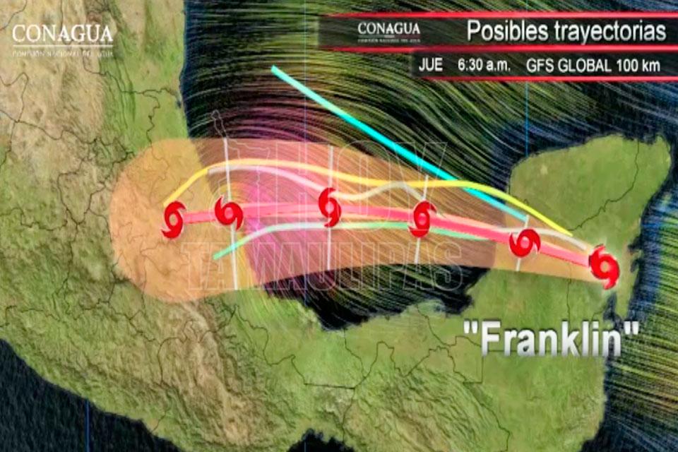 México,(Notimex).- La tormenta tropical Franklin avanza en las costas del Golfo de México, podría convertirse en huracán y tener un segundo impactó en Veracruz, por lo que se han iniciado acciones preventivas en las entidades que serán afectadas, entre ellas Puebla.