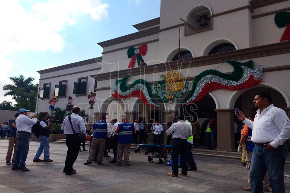 Reynosa, Tamaulipas.- Al celebrarse el Día Nacional de la Protección Civil, en Reynosa al igual que en todo el territorio mexicano, en la Presidencia Municipal se practicó un simulacro de emergencia por parte de la Coordinación de Protección Civil y Bomberos, con el objetivo de analizar el tiempo de reacción de empleados, funcionarios y visitantes del edificio ante una eventualidad.