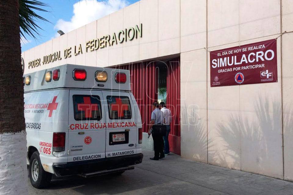 Ciudad Victoria, Tamaulipas.- Protección Civil coordinó los trabajos de un simulacro efectuado esta mañana en Palacio Federal y la Universidad valle de México (UVM), donde participaron corporaciones de seguridad y auxilio.